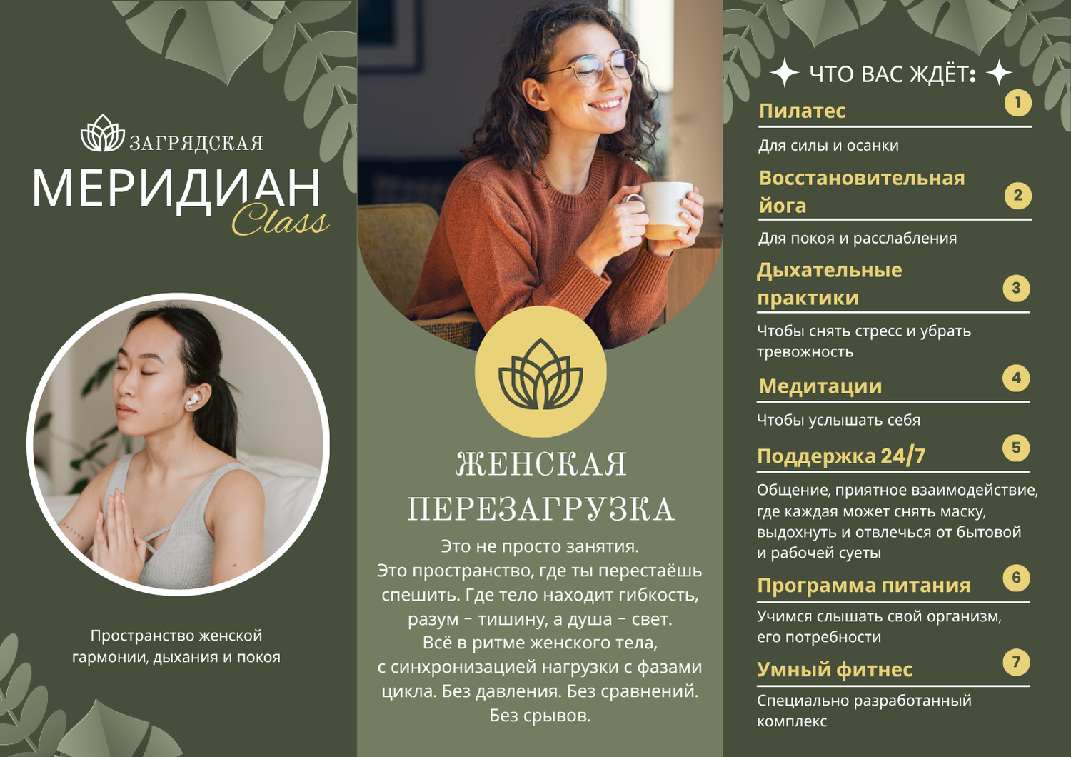 «Женская перезагрузка» — это 12-недельная программа, созданная для комплексного восстановления женского организма. В основе — индивидуальный функциональный тренинг, учитывающий особенности женского тела и фаз цикла. Здесь нет жестких правил, только мягкий подход, который помогает вернуть энергию и внутренний баланс без стресса и насилия над собой.